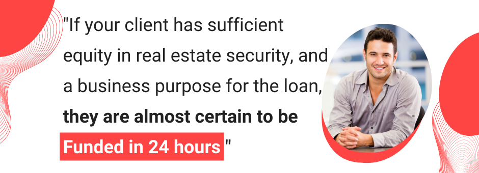 If the funds are required urgently, the last thing you need is to have to navigate through complex lending criteria, wait days or weeks for a sworn valuation to be done, supply years worth of financials, and be constantly drip-fed additional questions by the lender.